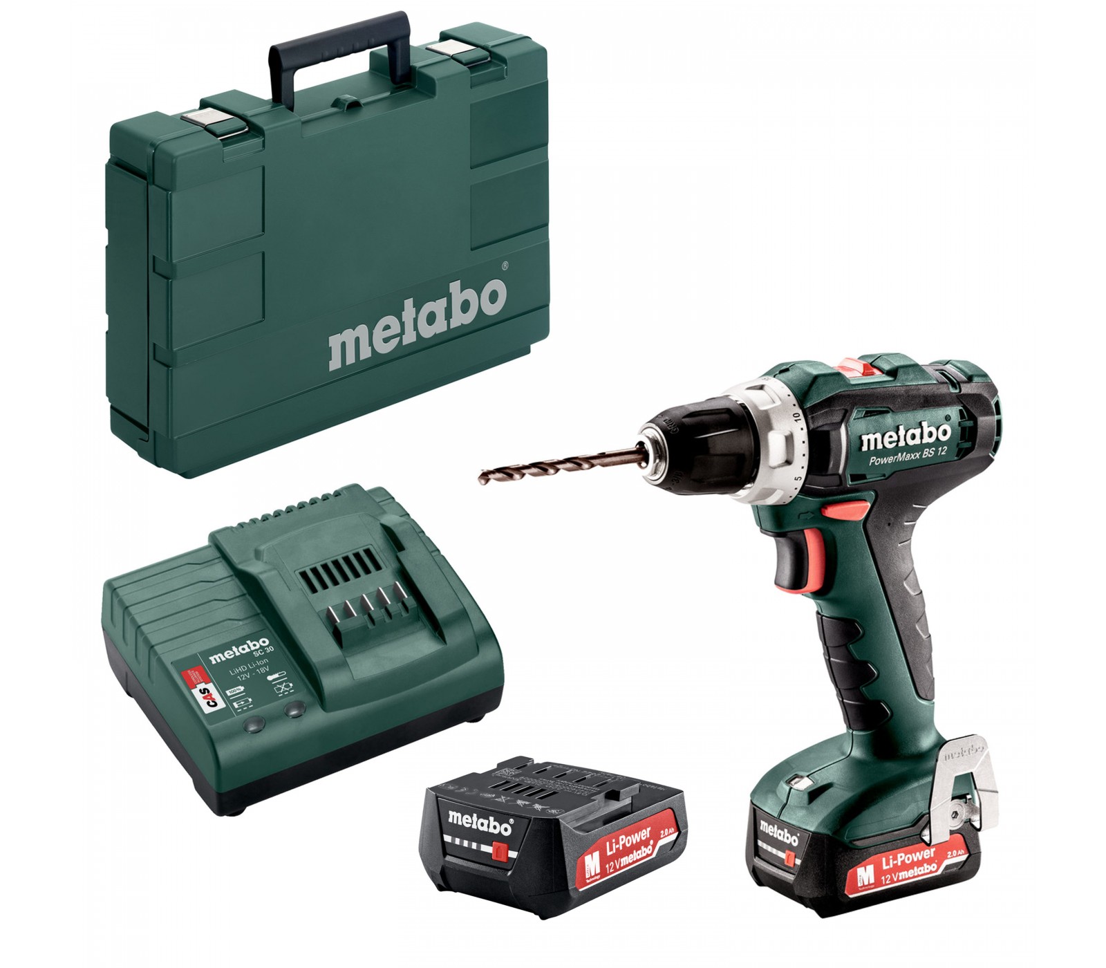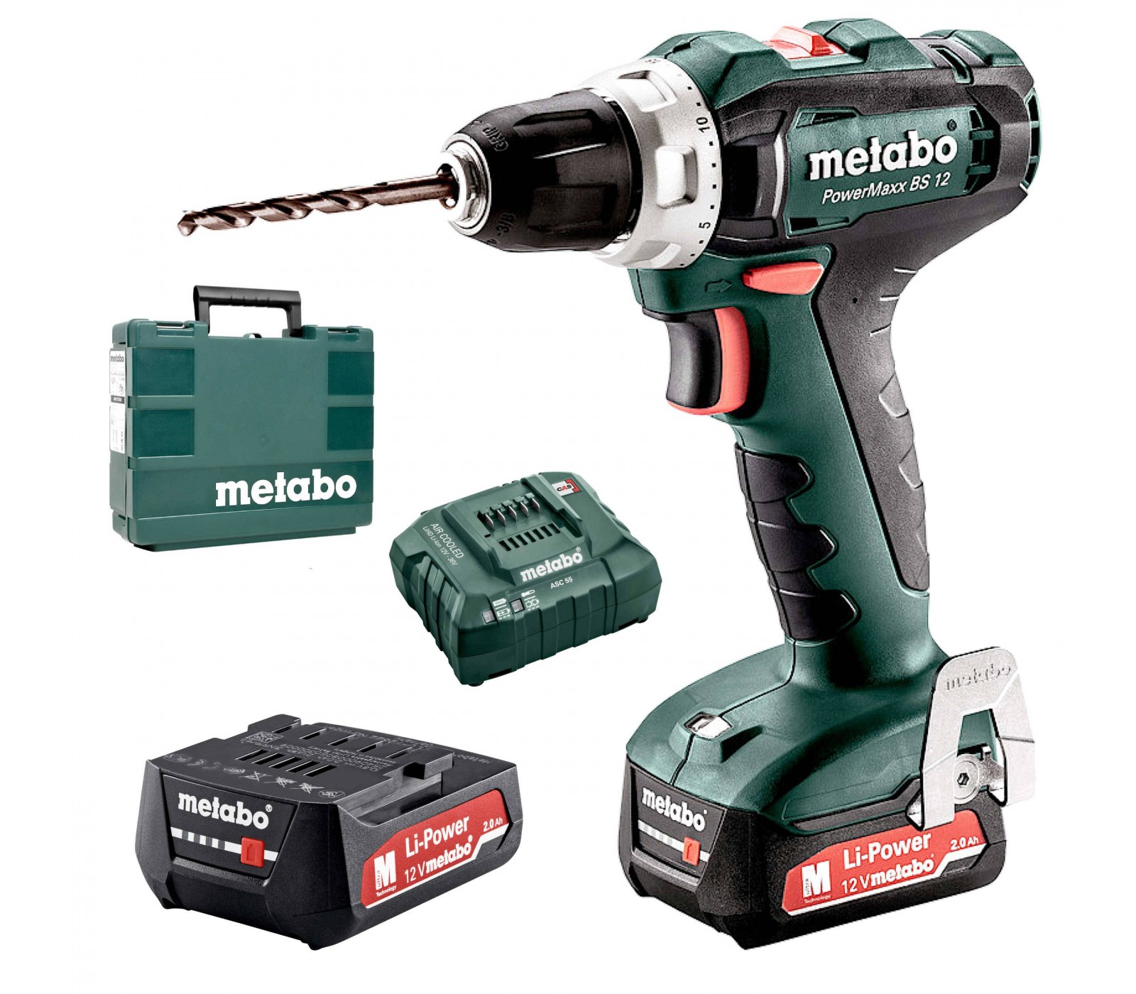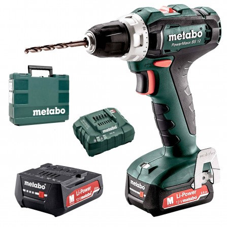 Akkuporakone Metabo PowerMaxx BS 12 (601036500) sarja, 12 V, 2 x 2 Ah, laturi + kotelo
