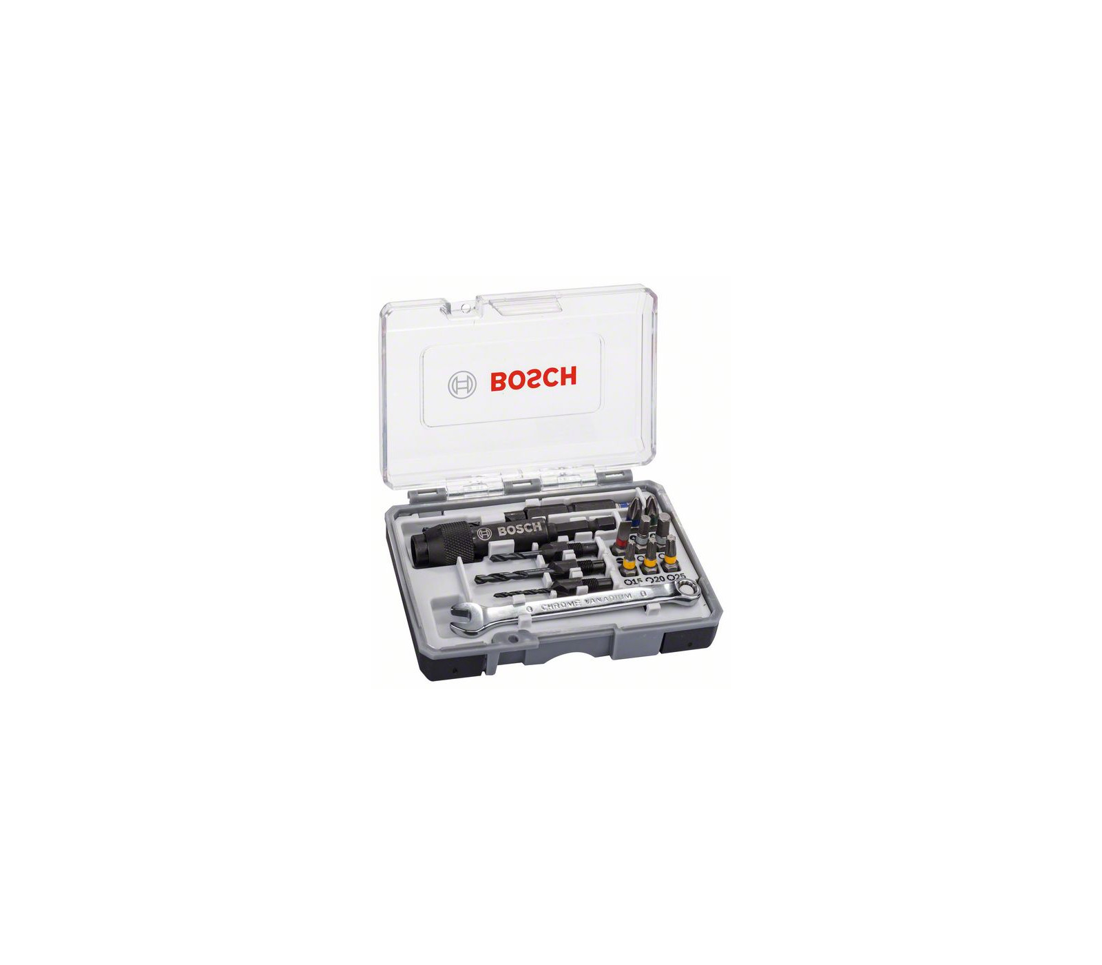 Sarja Bosch-kierreteriä, HSS-poranteriä ja räikkäavain, 20 kpl.