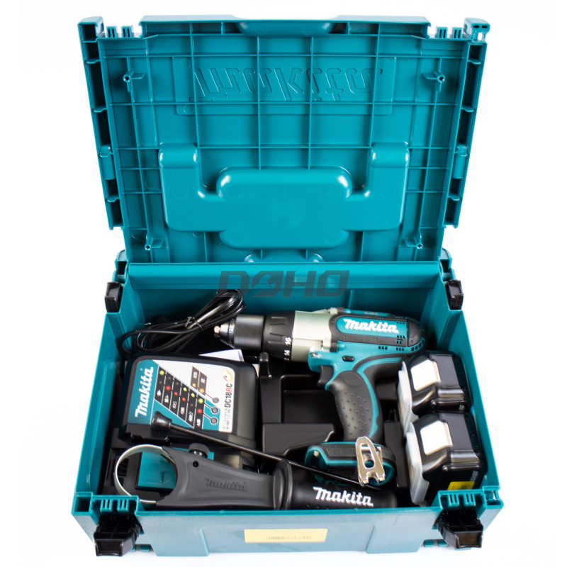 Makita DHP451RTJ johdoton iskuohjainsarja, 18 V, 2 x 5 Ah, laturi + kotelo