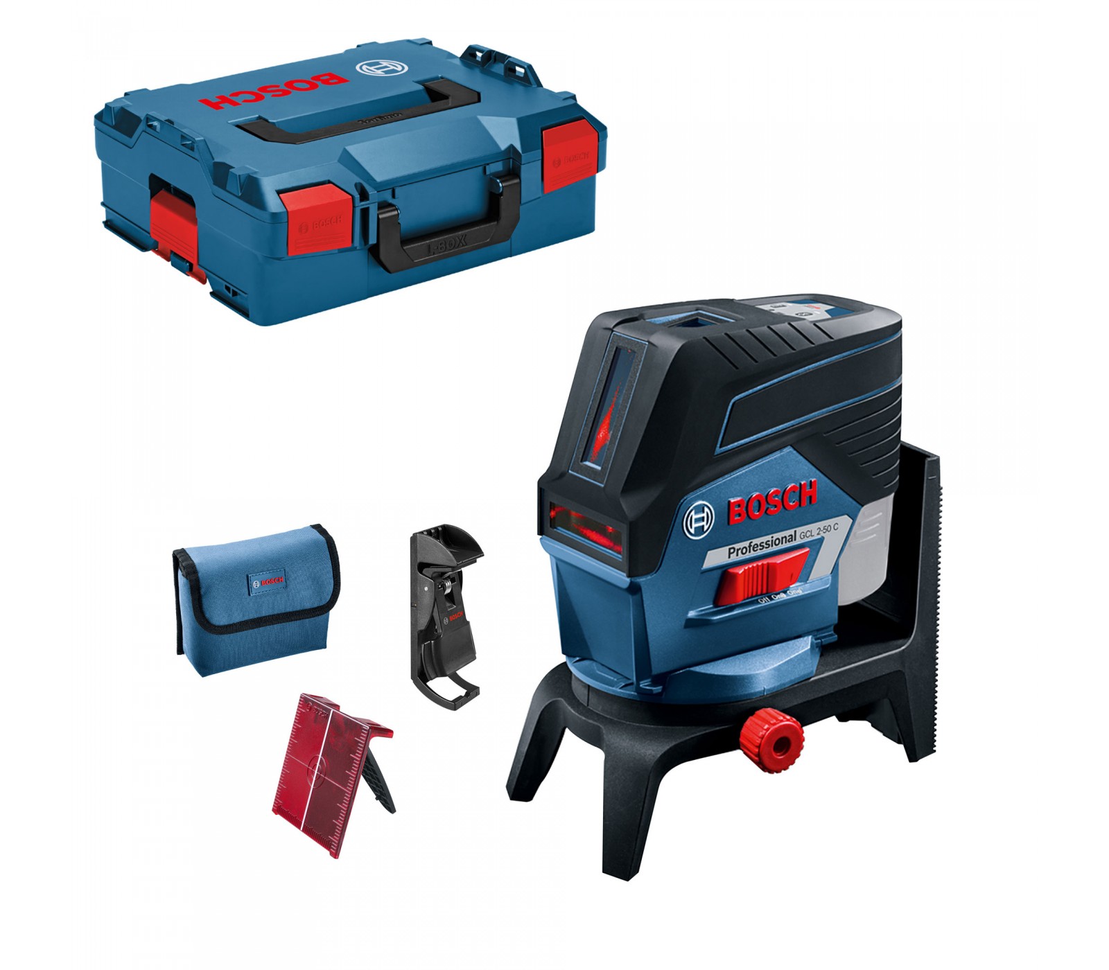 Risti punainen lasertason Bosch GCL 2-50C + matkalaukku